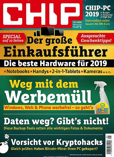 Die Zeitschrift CHIP mit CD wurde durch die Ausgabe CHIP PLUS mit 2 DVDs ersetzt und ist daher ab sofort nicht mehr bestellbar. Hier geht’s direkt zum Abo Prämien Vergleich der Zeitschrift CHIP PLUS CHIP mit CD - die seit 1978 erscheinende CHIP ist eines der größten Computermagazine Deutschlands. Sie gehört zur Hubert Burda Media, erscheint in 15 verschiedenen Ländern Europas und Asiens und erreicht über 1,7 Mio. Leser. Die CHIP richtet sich sowohl an Einsteiger als auch an Fortgeschrittene, Computerprofis und IT-Experten. Mit den meisten Ihrer Themen spricht die CHIP aber den durchschnittlichen privaten Computernutzer an. Alles rund um Hardware ( Computer, Flachbildschirme, Handys, Digitalkameras,…) wird ausführlich getestet und auch oftmals von der kritischen CHIP-Redaktion nicht mit Kritik verschont. Umfangreiche Bestenlisten geben Ihnen wertvolle Unterstützung beim Kauf. Aber auch Software und Betriebssystem kommen in der CHIP nicht zu kurz. Sie erhalten viele interessante Tipps und Testberichte über Windows, Antivirenprogramme und Freeware. Bei der CHIP mit CD erhalten Sie mit jeder Ausgabe zusätzlich eine Heft-CD mit nützlichen Tools, Freeware, Tutorials und vielen Ergänzungen zum Heft.