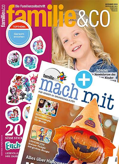 FAMILIE & CO + MACH MIT - erscheint im Family Media Verlag und ist eine Zeitschrift für die ganze Familie und richtet sich an Eltern mit Kindern bis 11 Jahren. FAMILIE & CO widmet sich Themen wie Erziehung, Familienleben, Freizeit, Gesundheit und Ernährung. Mit ihren spannenden und informativen Berichten hilft Ihnen die FAMILIE & CO das Familienleben aktiver und abwechslungsreicher zu gestalten. FAMILIE & CO bietet der jungen Familie eine tolle Mischung aus Fakten, Spiel und Spaß, Service und Ratgebern für das herausfordernde Familienleben. In jedem Heft finden Sie die ca. 24 seitige Beilage MACH MIT welche sich an Kinder im Alter von 6-9 Jahren richtet. Die Beilage MACH MIT steht unter dem Motto lesen, staunen und die Welt entdecken und verstehen - mit vielen Fotos, Rätseln, Experimenten und einem Poster in der Heftmitte. In unserem Abo Vergleich finden Sie für die FAMILIE & CO + MACH MIT eine tolle Prämie fürs Abo.