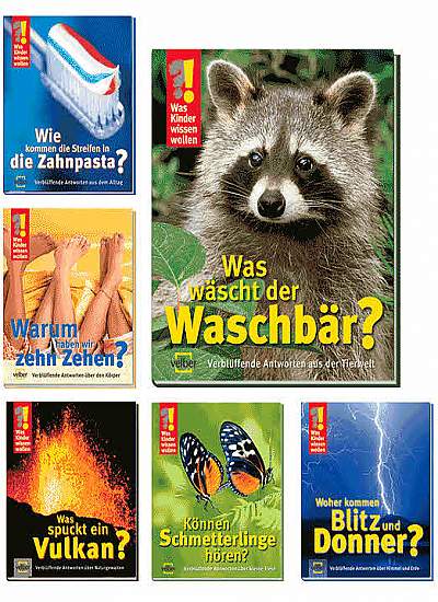 WAS KINDER WISSEN WOLLEN - das Buch Abo beantwortet in jeder Ausgabe 20 Fragen zu verschiedenen kindgerechten Themenbereichen. Die im Velber Verlag erscheinende Zeitschrift in Buchform richtete sich an Kinder im Alter ab 4 Jahren. Ab 7 kann der Nachwuchs dann selber lesen bis dahin ist die WAS KINDER WISSEN WOLLEN auch perfekt fürs Vorlesen geeignet. So findet Ihr Nachwuchs Antworten auf: Können Kühe rülpsen? Was spuckt ein Vulkan? Müssen Fische auch trinken? Wann darf der Lokführer aufs Klo? Warum regnet es im Regenwald? Warum wirbelt der Wirbelsturm? Wo beginnt der Regenbogen? Frieren Pinguine an den Füßen? eben alles was Kinder wissen wollen. WAS KINDER WISSEN WOLLEN wird von der Stiftung Lesen empfohlen. Sie finden die Kinder-Zeitschrift WAS KINDER WISSEN WOLLEN in Buchform auch bei uns im Abo-Vergleich - jetzt Abo bestellen: