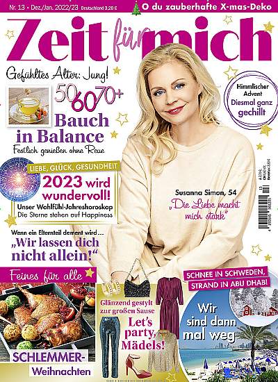 ZEIT FÜR MICH - die Frauenzeitschrift, welche seit 2016 in der Funke Medien Gruppe erscheint, richtet sich an die Frau im besten Alter - ganz nach dem Motto: Ihr Alter? gefühlt jung! ZEIT FÜR MICH richtet sich also an die junge Frau ab 45 Jahren und ist genau an diese Lebensphase angepaßt. Die Kinder sind aus dem Haus oder bereits selbständig und es ist nun wieder mehr Zeit für einen selbst, die Freizeit oder den Beruf. ZEIT FÜR MICH berät Sie kompetent und begleitet Sie in dieser Lebensphase. Dabei steht ZEIT FÜR MICH für emotionale Reportagen, spannende und exklusive Interviews, zu Ihnen passende Mode und viele tolle Beauty-Tips. Ein tolles Extra ist das 20 seitige Rezeptheft, welches jeder Ausgabe beiliegt. Bei uns im Abo Prämien vergleich bekommen Sie fürs Abo der ZEIT FÜR MICH oft eine tolle Prämie: